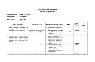 Mata pelajaran bahasa dan sastra sunda smp/mts kelas vii ki 7.1 menghayati dan mengamalkan ajaran agama yang dianutnya kd (hasil reviu) 7.1.1 menghargai dan mensyukuri keberadaan bahasa sunda sebagai anugerah tuhan yang maha esa sebagai sarana komunikasi dalam percakapan, iklan layanan masyarakat, karangan bahasan, pengalaman pribadi, kaulinan Jika ada sedang mencari pelajaran bahasa sunda kelas 6 sd semester 2. Membedakan suara vokal e`, e, dan eu. Pemetaan kd kelas 4 semester 2 kurikulum 2013. Dalam hal ini guru dituntut harus membuat perangkat pembelajaran ini supaya terciptanya.