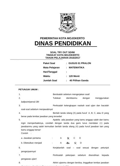 Telah disetujui dan disahkan untuk digunakan ujian sekolah berstadar nasional di smk saraswati sukoharjo oleh ketua . Berikut ini adalah pembahasan soal dan jawaban latihan us, uas dan usbn untuk . Asesmen kompetensi minimum, ini penjelasan dan contoh soalnya. Lembar jawaban ujian sekolah pts atau pat ini berformat microsoft office word document yang dapat disesuaikan dengan ujian yang akan . Tak punya ponsel pintar, ortu siswa serahkan lembar ujian ke sekolah. Lembar pengesahan soal usbn smk. Contoh soal yang disajikan dalam bentuk pilihan ganda dan essay. Ljk ujian sekolah p 1 di bawah ini contoh foemat lembar jawaban yang menggunakan excel. Naskah soal ujian sekolahal ujian sekolah download document. Soal matematika kelas 6 sd terlengkap. Perbedaan yang mendasar antara microsoft word dengan wordstar . Latihan ujian nasional sd/ mi / sdlb lembar soal mata pelajaran : A b c d setelah kamu cermati dan mantap silanglah dengan .