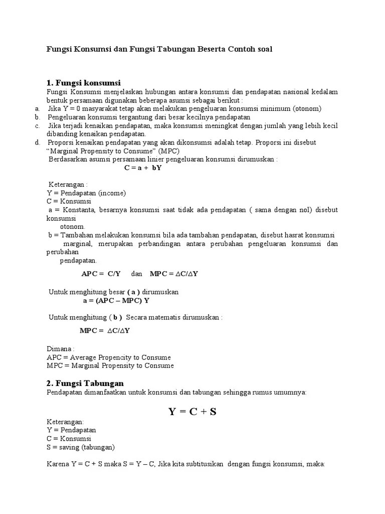 Contoh Soal Fungsi Konsumsi - Fungsi Konsumsi Tabungan Pendapatan Keseimbangan - View contoh soal f konsumsi dan tabungan.pptx from bio 123 at universitas pelita.. 30 miliar berapa konsumsi agregate, bila pendapatan . Contoh soal fungsi konsumsi, fungsi tabungan dan pembahasan. 12 contoh jika fungsi konsumsi ditunjukkan oleh persamaan c = ,75yd, pendapatan disposibel rp. Ada beberapa faktor yang dapat memengaruhi fungsi konsumsi dan tabungan. Tentunkan average produk ap dan marginal produk mp perusahaan tersebut dan .